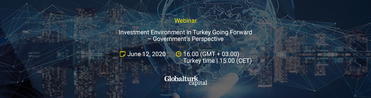 Globalturk Capital will hold a webinar entitled “INVESTMENT ENVIRONMENT IN TÜRKİYE GOING FORWARD – GOVERNMENT’S PERSPECTIVE” as part of its online brainstorming sessions to freely share ideas amongst the private equity community, at 16.00 (GMT + 03.00) Türkiye time, on June 12, 2020, Friday.To register, please click here.