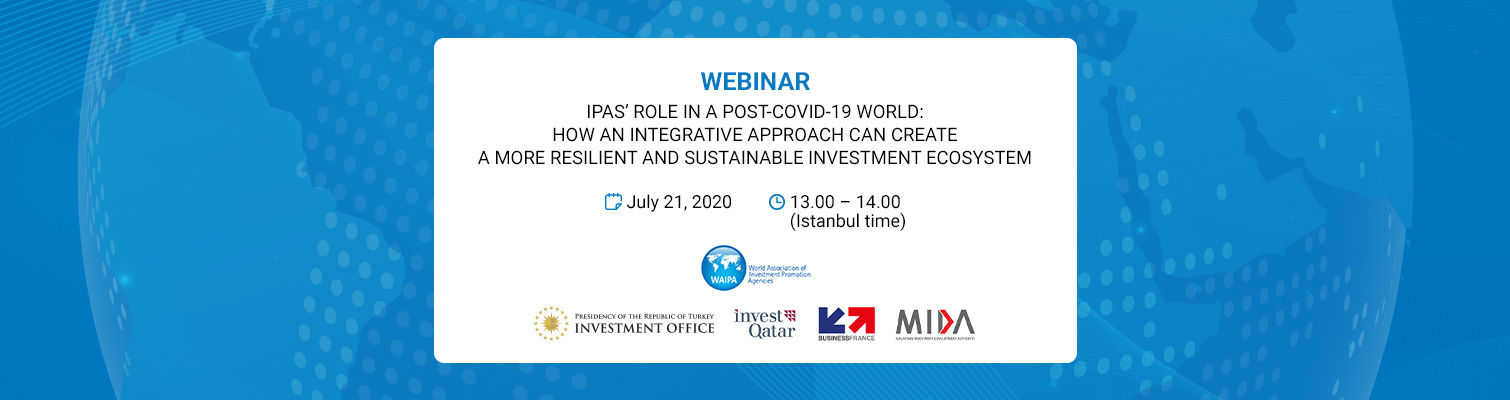 In the face of gradual recovery form Covid-19, it remains highly important that a multilateral attitude within the FDI ecosystem to exchange best practices is adopted. In this vein, the World Association of Investment Promotion Agencies (WAIPA) will host a webinar where member IPAs will present their measures to minimize the effects of the pandemic and exchange ideas on how to tackle its after-effects for a faster recovery and a more sustainable investment ecosystem.